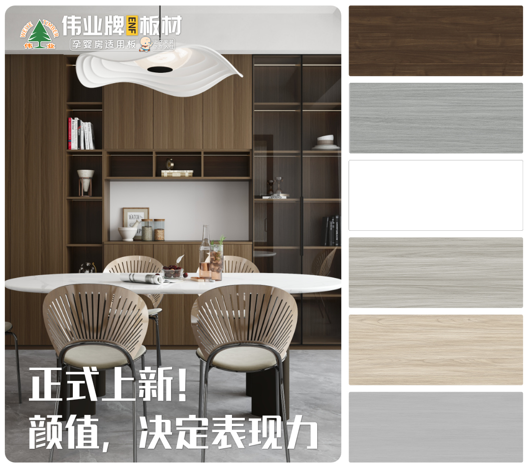 偉業牌ENF板材致力于為每一個家庭帶來既環保又美觀的建材選擇。近日,再度引領潮流,板材花色全新升級與上新,為追求高品質生活的您提供了更多元化的家居美學方案。 在...