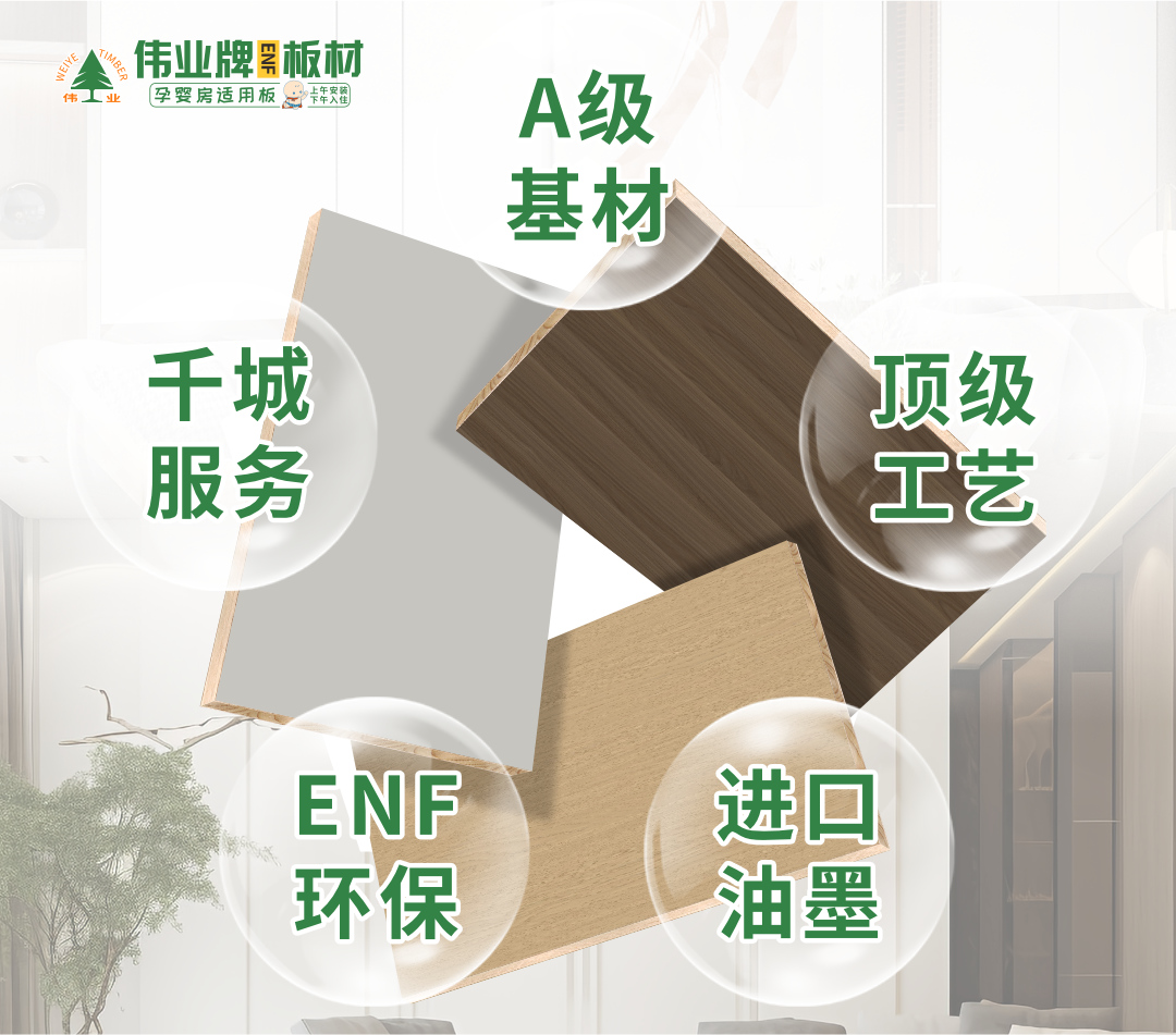 選板材,不止看環(huán)保!偉業(yè)牌板材用A級(jí)基材頂級(jí)工藝進(jìn)口油墨ENF+環(huán)保千城服務(wù),重新定義“一塊好板”的滿分標(biāo)準(zhǔn)! A級(jí)原木基材,從源頭打造“基因霸權(quán)” 好板材,...
