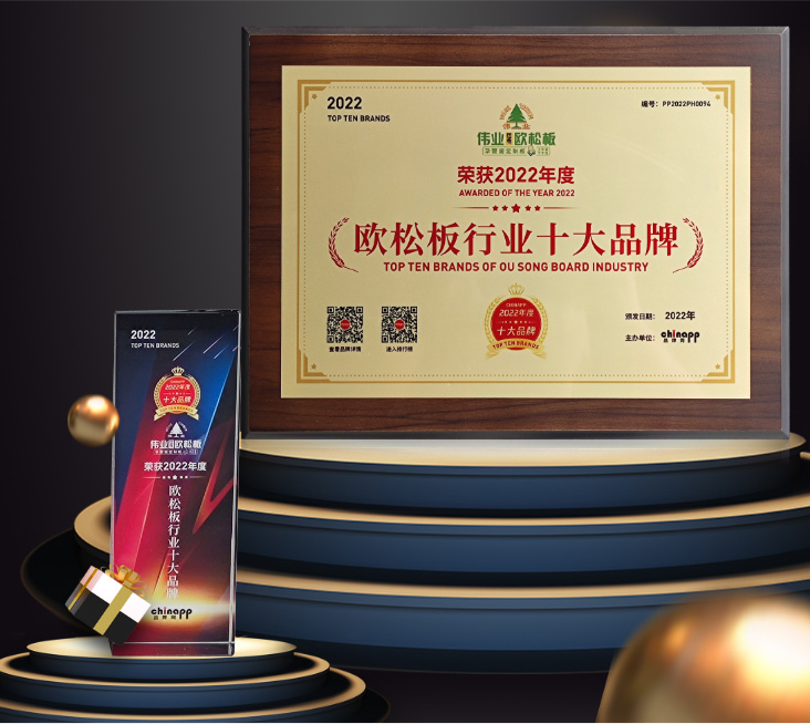偉業(yè)ENF歐松板榮獲2022年歐松板行業(yè)十大品牌 為了發(fā)掘更多優(yōu)質(zhì)品牌,助力優(yōu)秀企業(yè)發(fā)展,品牌網(wǎng)主辦了“2022年歐松板行業(yè)十大品牌”評(píng)選活動(dòng),經(jīng)過激烈角逐,榜...