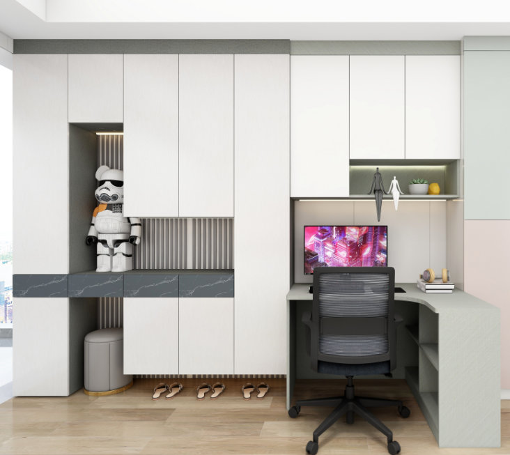 地點(diǎn):湖南婁底面積:210m2內(nèi)容:板材\全案高定展廳前臺(tái) 接待洽談區(qū) 板材展示區(qū)展廳的前端是板材展示區(qū),以板材為主,五金、膠水、移門(mén)等產(chǎn)品為輔,全面展示了各類(lèi)...